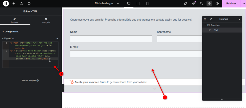 Como incorporar formulário no Elementor