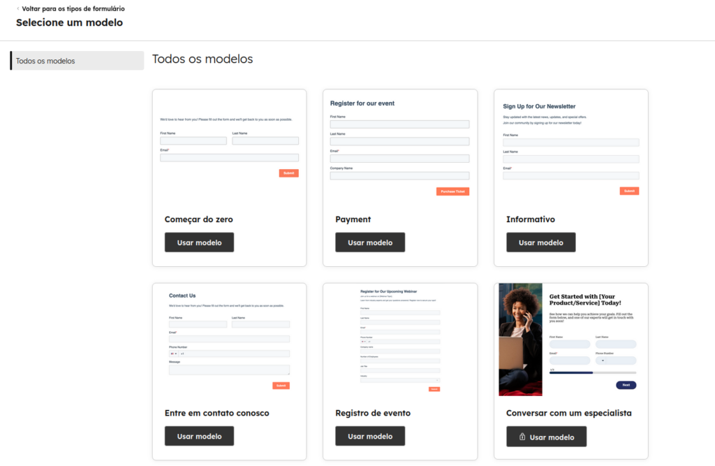 4. Selecione um modelo clicando em “Usar modelo”. Neste exemplo, usaremos o “Começar do zero”.