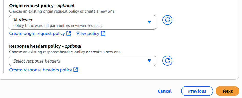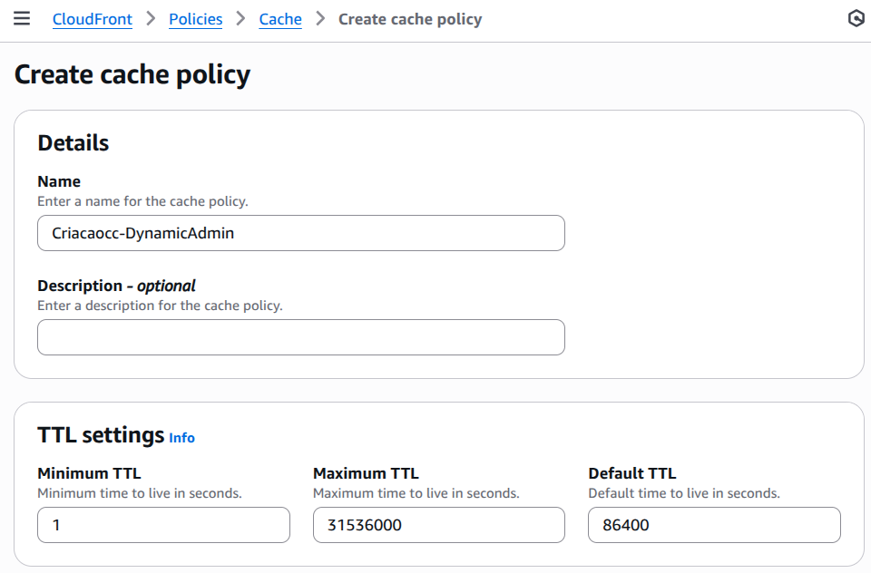 Após criados as políticas de cache, você pode anexá-los a um comportamento de cache da distribuição CloudFront nos próximos passos.