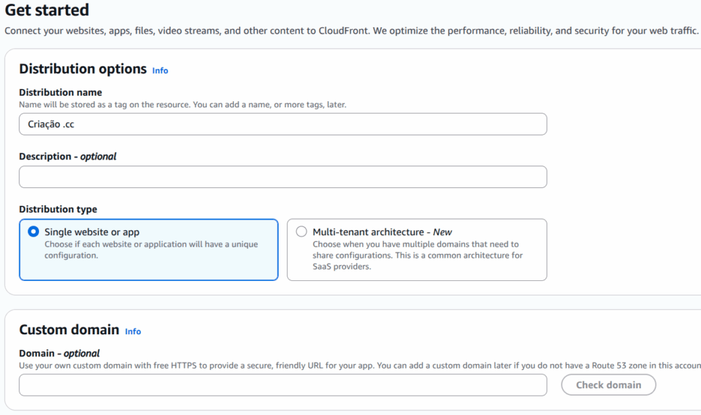 Primeiramente, é importante que você compreenda que a solução de integração AWS CloudFront é específica de orientação técnica para projetos Criação .cc que não se enquadrem com o uso da Cloudflare como solução.