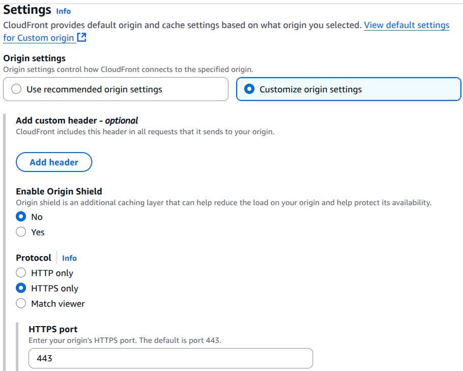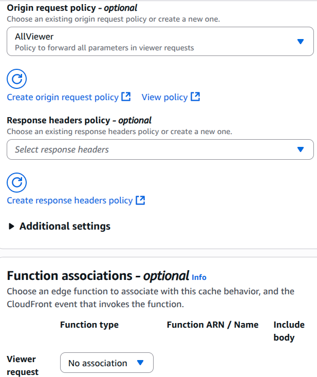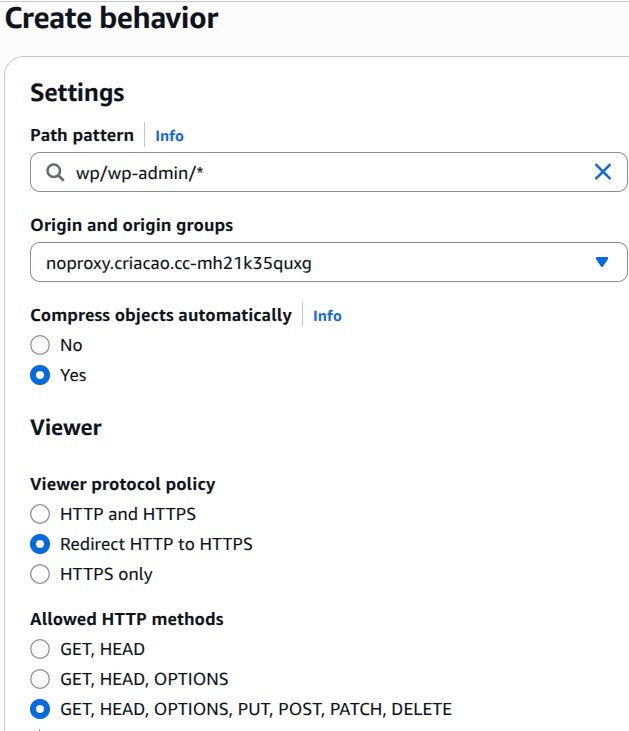 - Viewer protocol policy: Redirect HTTP to HTTPS