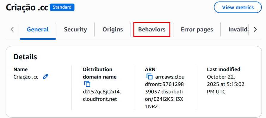 Configurar Comportamentos Personalizados Na Distribuição do CloudFront