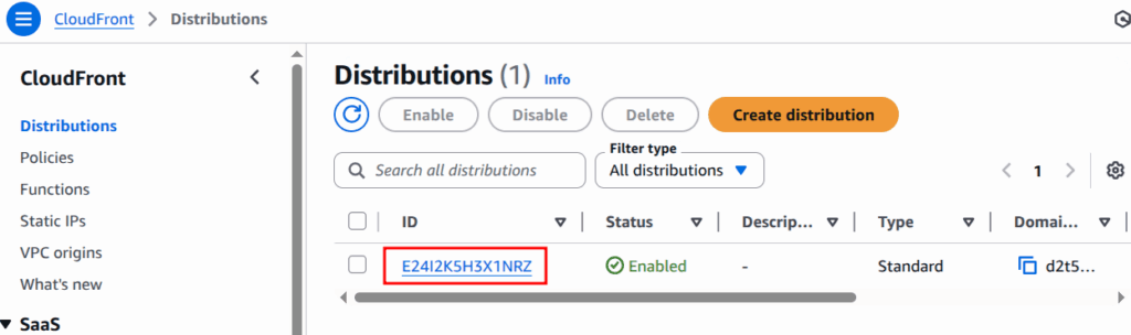 8. Etapa 4, Review and create, revise as informações e clique em Create distribution;